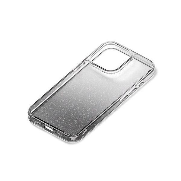 PGA iPhone15 Pro用 グラデーションハイブリッドケース ラメ・ブラック