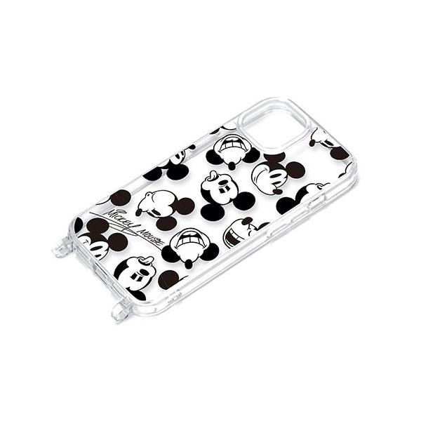 PGA iPhone15用 ショルダーストラップホール付クリアハイブリッドケース ミッキーマウス
