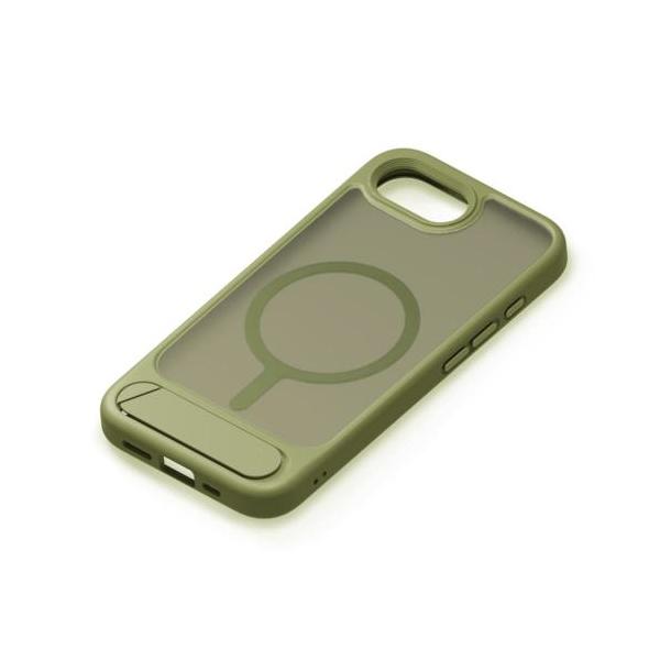 PGA PG-25KMH11GR マットカーキー iPhone 16e用 MagSafe対応 スタンド付ハイブリッドケース 背面ケース