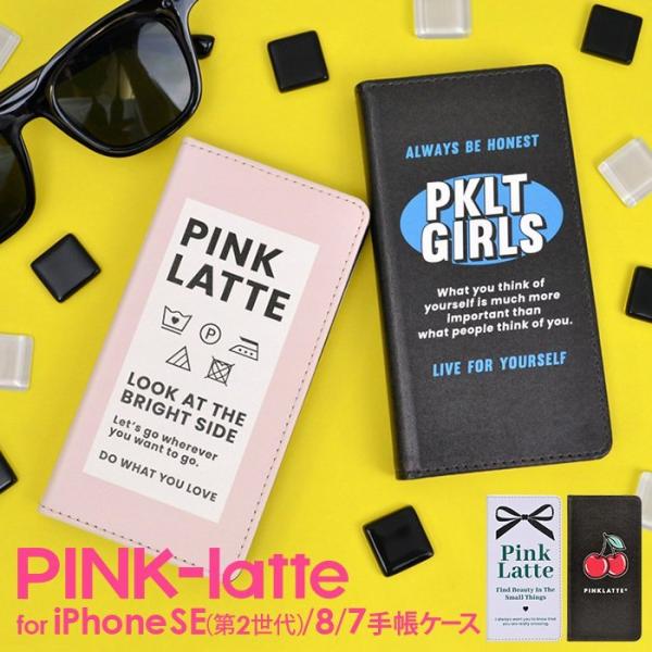 スマホケース iPhone SE(第2世代) 8 7 兼用 PINK-latte ピンクラテ スリム手帳ケース ブランド ケース