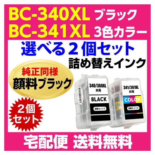 キャノン BC-340XL〔大容量 ブラック 黒 純正同様 顔料インク〕BC-341XL〔大容量 3色カラー〕の選べる2個セット 詰め替えインク