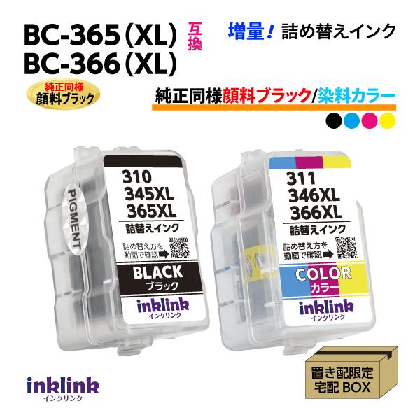 BC-365XL〔純正同様 顔料ブラック 黒〕BC-366XL〔大容量 3色カラー〕の2個セット キヤノン互換 詰め替えインク 詰替え PIXUS TS3530 TS3730
