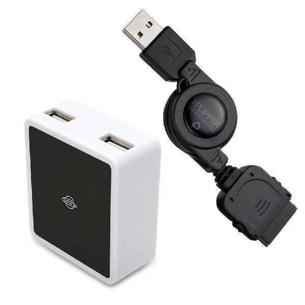PLANEX 迷わず挿せる THE FLIPPER USBケーブル for iPhone/iPad/iPod 2ポート USB充電器セット UFS-ADK-W3-BK 黒 _.
