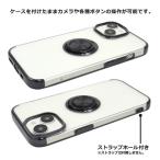 落下防止用のスマホリングが付いた、メタルカラーバンパーソフトクリアケースです。