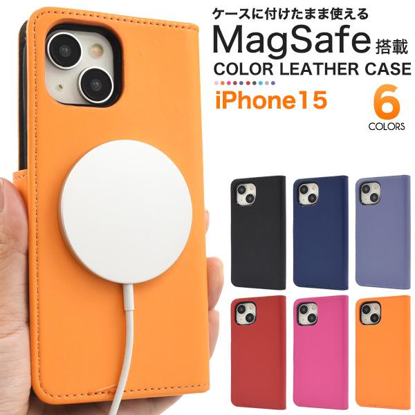 iPhone15シリーズ対応 MagSafe搭載 カラーレザー 手帳型ケース 保護カバー フラップベルト付き マグセーフ iPhone15 /iPhone15 Pro /iPhone15 ProMax