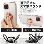 落下防止用のスマホリングが付いた、メタルカラーバンパーソフトクリアケースです。