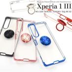 エクスペリア Xperia1 III SO-51B/SOG03/A101SO/XQ-BC42共通対応 スマホリング付き メタル バンパーケース 背面クリア 保護カバー ソフトケース ワン