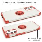 落下防止用のスマホリングが付いた、メタルカラーバンパーソフトクリアケースです。