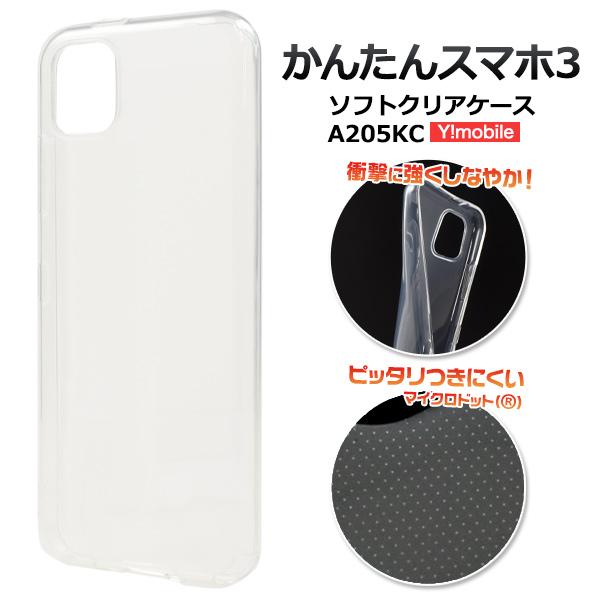 かんたんスマホ3 A205KC 専用 ソフトケース バックケース TPU素材 背面保護 無地ケース 透明ケース シムフリー 簡単スマホ 3 a205kc