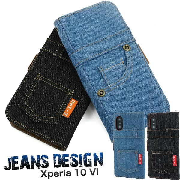 エクスぺリア Xperia10 VI 専用 ジーンズデザイン 手帳型ケース デニムケース 保護カバー 手帳ケース スマホケース エクスぺリア10 Xperia10VI SO-52E/SOG14
