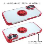 落下防止用のスマホリングが付いた、メタルカラーバンパーソフトクリアケースです。