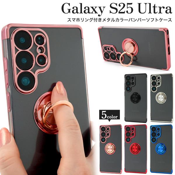 ギャラクシー Galaxy S25Ultra 対応 スマホリング付き バンパーケース メタルカラー ソフトクリアケース 保護カバー GalaxyS25 ウルトラ SC-52F SCG32 SIMフリー