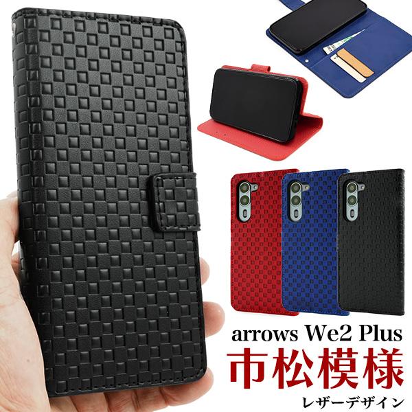 アローズ arrows We2 Plus F-51E対応 市松模様レザー 手帳型ケース カードポケット付き レザーケース 保護カバー チェック 格子柄 手帳ケース arrowsWe2プラス