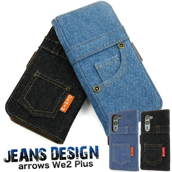 アローズ arrows We2 Plus F-51E対応 デニム 手帳型ケース ジーンズ生地×レザー 保護カバー カードポケット付き デニムケース ポーチ arrowsWe2プラス