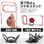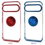 落下防止用のスマホリングが付いた、メタルカラーバンパーソフトクリアケースです。