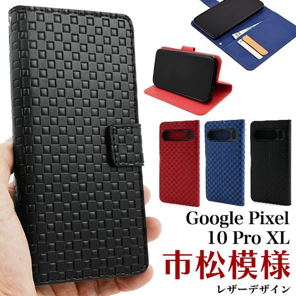 グーグルピクセル GooglePixel 10Pro XL 専用 市松模様 レザー 手帳型ケース カードポケット付き チェック 格子柄 革 保護カバー スマホ GooglePixel10ProXL