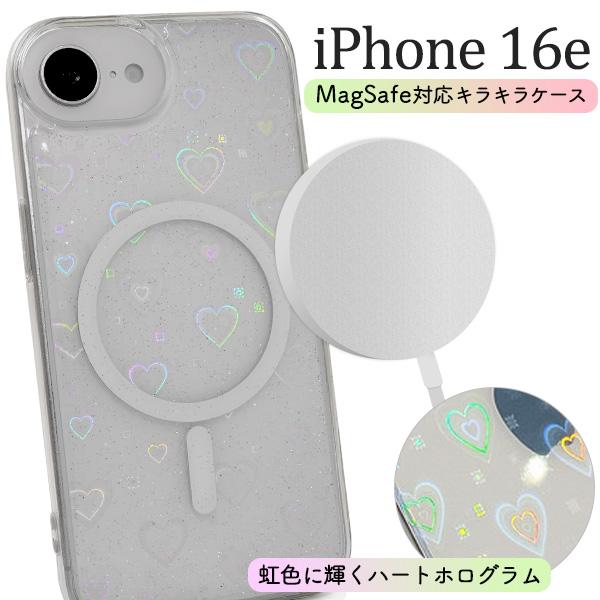 iPhone16e アイフォン16e 専用 MagSafe キラキラハート ソフトケース 保護カバー 透明 クリア TPU素材 バンパーケース マグセーフ iphone16E 6.1インチ 2025