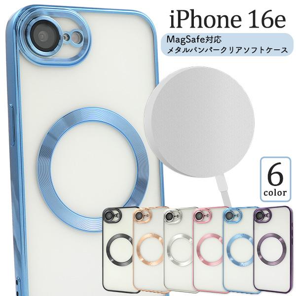 iPhone16e アイフォン16e 専用 MagSafe クリアケース 保護カバー メタル バンパーケース ソフト 透明 クリア TPU素材 マグセーフ iphone16E 6.1インチ 2025