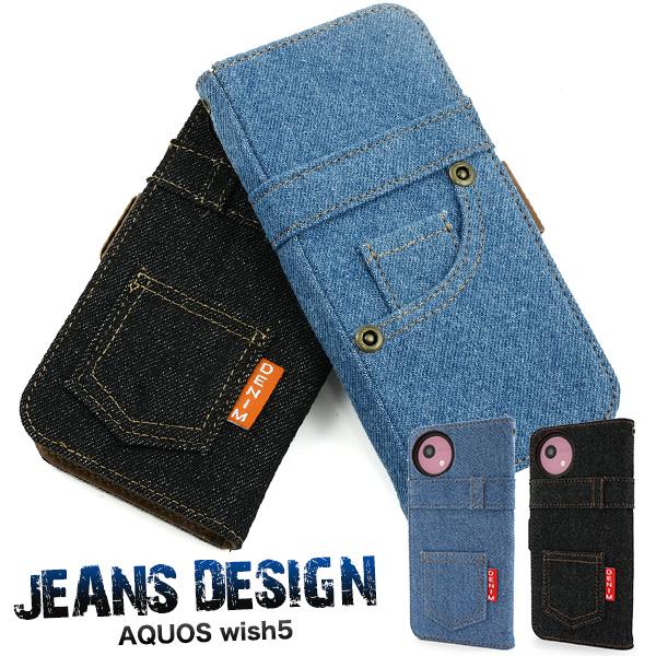 アクオスウィッシュ AQUOSwish 5 対応 ジーンズデザイン 手帳型ケース デニム生地×レザーケース 保護カバー カードポケット AQUOSwish5 SH-52F A502SH SH-M32