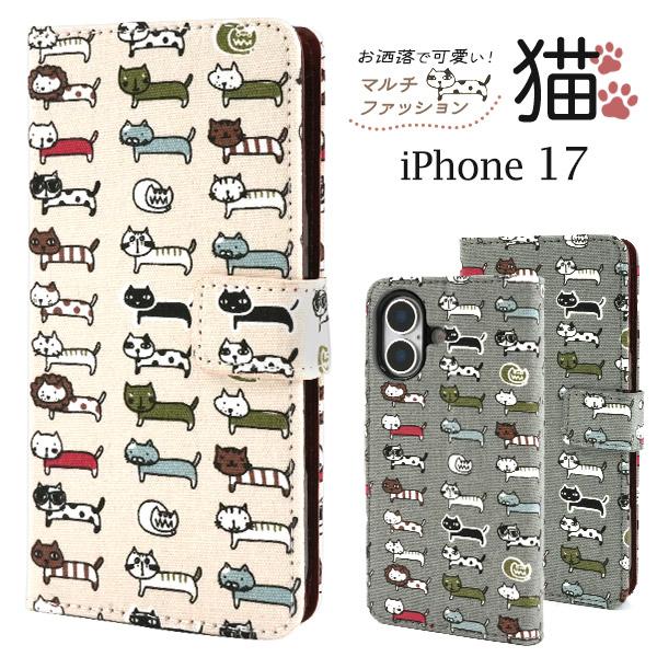 iPhone17 アイフォン17 シリーズ対応 大量猫 手帳型ケース ねこ生地×レザー 保護カバー 動物 アニマル ネコ iPhone17 iPhone17Pro iPhone17ProMax 2025年