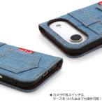 デニムケース 手帳型ケース カードポケット付 保護カバー ジーンズ生地×レザー