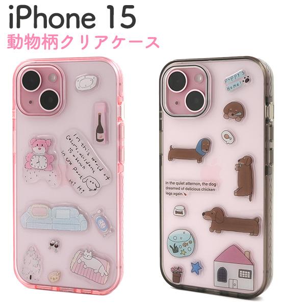 iPhone15 シリーズ対応 動物シール柄 クリアケース ジャケット バックカバー 透明 アニマル アイフォン iPhone 15 iPhone15Pro iPhone15Plus iPhone15ProMax