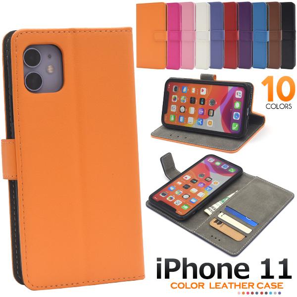 iPhone11 ケース 手帳型 カラフル10色 合皮レザー アイフォン11 ケース