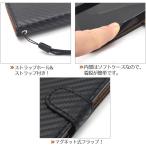 iPhone 11 Proを保護する、カーボン調デザインの手帳型スマホケース。
