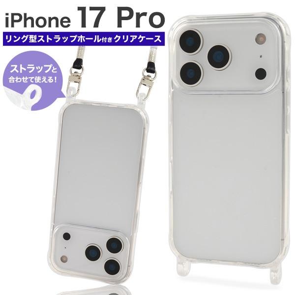 iPhone17 Pro ケース カバー クリアー 透明 ショルダーストラップ対応 一体型ホール付 アイフォン 17 Pro 背面保護 ジャケット 携帯 スマホケース
