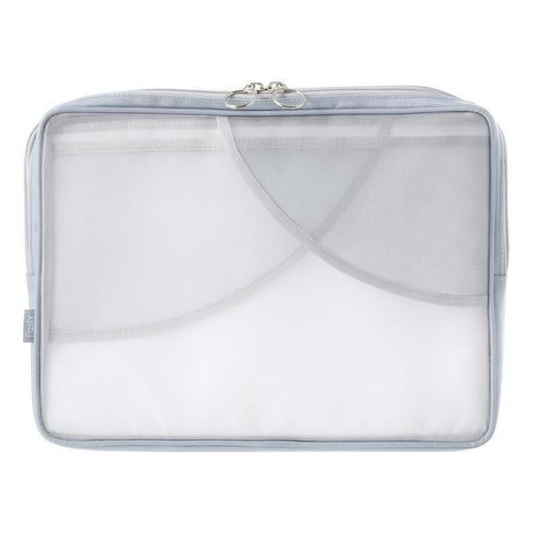 - 【商品説明】●透けるメッシュ素材で外から中身を確認できる。●カーブのついたポケットが上部についている為、小物を分類して収納し、中身も取り出しやすい。●リング形状で指をひっかけて開きやすいファスナー。開口部が大きく開くので中身が取り出しやすい。●PC収納ポケットにはクッションがついていて持ち運びも安心。●女子中高生に人気のパステルカラーでPastyシリーズで色を合わせて使用できます。【仕様】●外形寸法:W320×D41×H240mm ●質量:約186g ●13インチPC対応(目安) ●材質:本体=ナイロン・ポリエステル、スライダー=金属 <ジェットプライス>