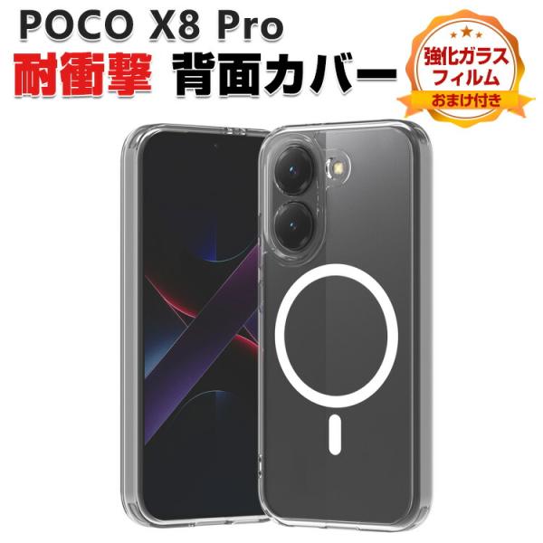 - POCO X8 Pro ケース クリア 耐衝撃 カバー タフで頑丈 2重構造 TPU+PC素材製 透明 カバー 衝撃吸収 落下防止 おすすめ おしゃれ カッコいい 人気 磁気吸着 ストラップホール付き 小米 シャオミ Xiaomi POCO X8 プロ 背面カバー 保護ケース 強化ガラスフィルム おまけ付き