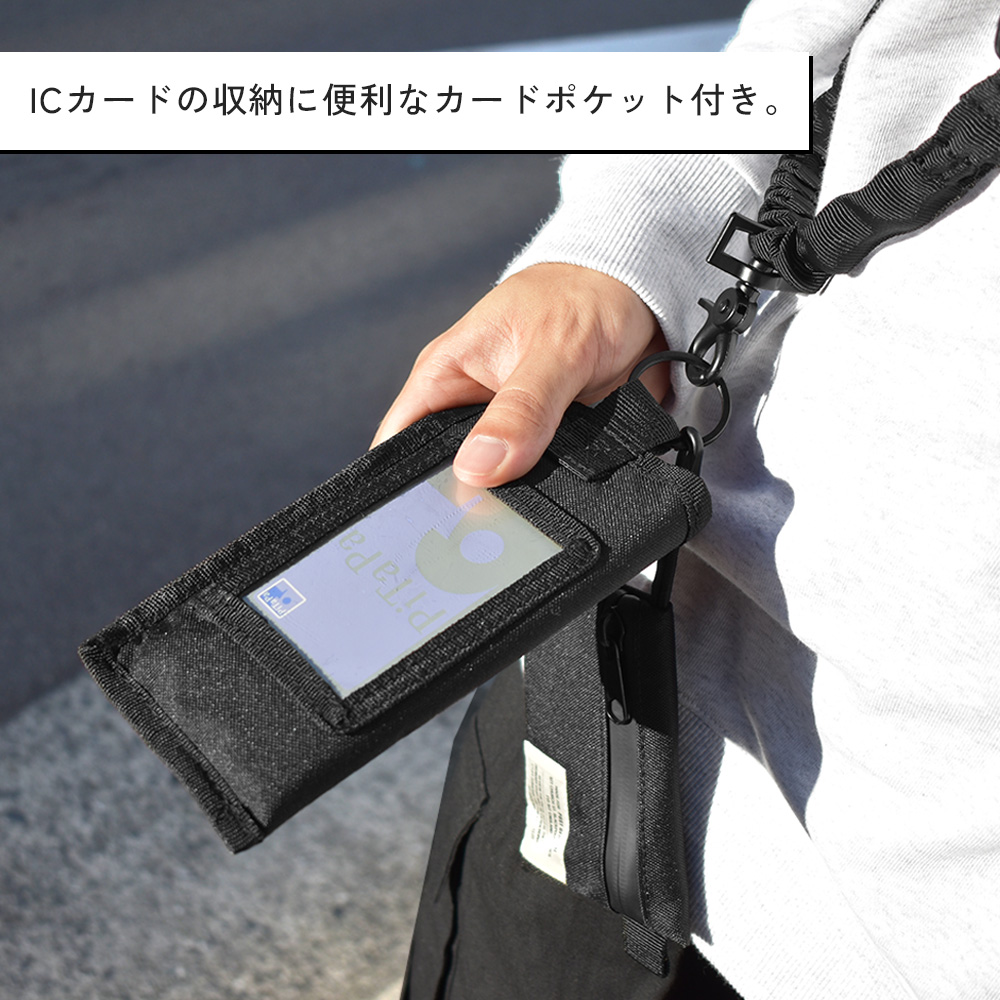 スマートフォンケースは出し入れのしやすさと落下防止を兼ね揃えたベルクロ留めを、