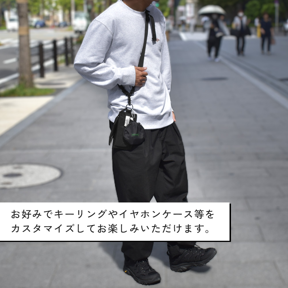 ストラップに付属しているDリングにも、イヤホンケースやキーホルダーなどを取り付けられます。