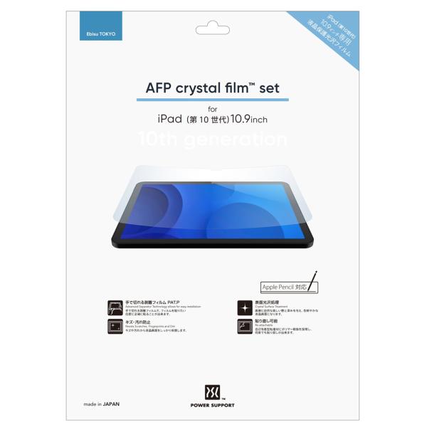 - [パワーサポート iPad(第10世代)10.9inch / iPad 11inch (A16) (2025)用AFP Crystal film PIPD-01 [PIPD01]] の商品説明【生まれ変わったiPadで動画を楽しむならクリスタルフィルムを】●Liquid Retinaディスプレイは新しいオールスクリーンのデザインに。●映し出される鮮やかな画像や映像を、パワサポならではの光沢表面処理で色鮮やかに再現します。【汚れや傷もつきにくい!】●表面には「アンチフィンガープリント:AFP」(防指紋)の特殊コーティングを施しています。●指紋や皮脂をつきにくく、そしてとれやすくしてくれる汚れに強い仕様です。●またハードコートのためキズも付きにくく、クリアな画面を長く保ちます。【手で切れる剥離フィルム(PAT. P)で貼るのも簡単!】●パワーサポートのフィルムは剥離フィルムが手で簡単に裂けるようになっています。●最初に真ん中だけを剥がせば、簡単に貼る位置を固定でき、フィルムを貼りたい位置に正確に貼ることができます。【お取り扱いに関して】●※このフィルムは、キズや汚れを完全に防止するものではありません。●※iPadは精密機械です。作業時の取り扱いには十分ご注意下さい。●※画像は使用イメージです。[パワーサポート iPad(第10世代)10.9inch / iPad 11inch (A16) (2025)用AFP Crystal film PIPD-01 [PIPD01]]のスペック●対応機種:iPad(第10世代)10.9inch、iPad 11inch (A16) (2025)●セット内容:AFPクリスタルフィルム1枚、クリーナークロス1枚○返品不可対象商品