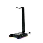 - ヘッドホンスタンドに多彩な機能を搭載。ヘッドホンスタンド台座にUSB3.0×2個、USBサウンドデバイス機能を搭載。■ヘッドホンスタンド台座にUSB3.0×2個とヘッドセット、ヘッドホン、マイク端子を装備。ヘッドセット/ヘッドホン端子には、Virtua7.1サラウンド機能に対応するUSBサウンドデバイス機能を搭載しています。また、耐久性に優れたアルミ素材を採用、底面にはラバーを装備し安定性を担保底面のLEDイルミネーションは、 RGBイルミネーションモードと静寂モードに対応し、状況により切り替えが可能。※ヘッドセットは付属致しません