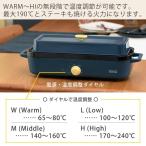 3つのプレートがスタッキングできるスリムな形状のホットプレート。付属のレシピブックで広がる味のバリエーション。WARM〜HIの無段階で温度調節が可能です。最大190℃とステーキも焼ける火力になるので様々なお料理にご活用いただけます。