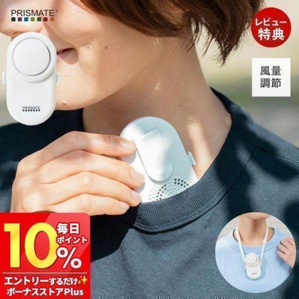 襟エアーファン PR-F092 ハンズフリーファン ポータブルファン クリップ ネックストラップ 風量調節 ホワイト 抗菌 PRISMATE プリズメイト