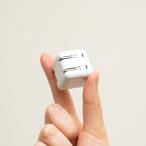 USBコードに繋げて充電する製品に使えるACアダプターです。他のコンセントに干渉しにくいコロンとした小さなキューブ型。もしもの危険を防ぐため、安全性にもこだわりました。プラグを格納すれば持ち歩きにだってぴったり。小さいからこそ、いつでも頼れるアイテムです。