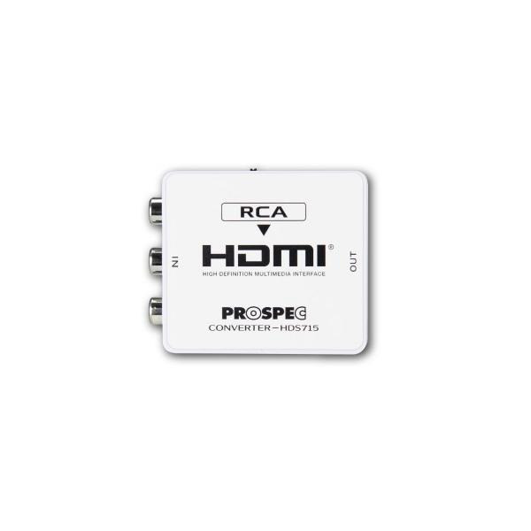 - プロスペックRCA→HDMI変換アダプター HDS715 入力端子RCAピン端子(赤/白/黄) 出力端子HDMI(720p/1080p) 電源USB電源アダプター(5V0.5A以上)別売 本体サイズW55mm/H60mm/D20mm 付属品miniUSBケーブル(75cm)・説明書・保証書 ※音声出力レベルの調整はできません。アナログ信号をHDMI端子に入力できます! メーカー保証1年&メーカーサポートもあり安心できる商品です。