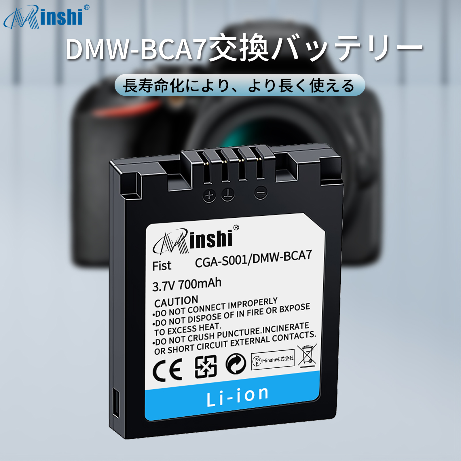 【minshi】Panasonic DMW-BCA7 対応 互換バッテリー【700mAh 3.7V】PSE認定済 高品質交換用バッテリー