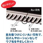 ●刃先が丸いので、石けんやローションなしでウブ毛をやさしくカットできます。