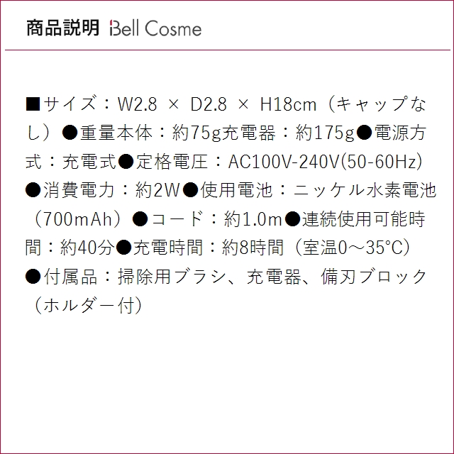 ●付属品:掃除用ブラシ、充電器、備刃ブロック(ホルダー付)