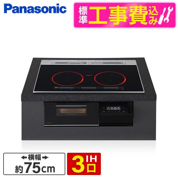 PANASONIC KZ-A1V7K 標準設置工事セット ジェットブラック Aシリーズ ビルトインIHクッキングヒーター(75cm幅・IH3口・単相200V・ダブルオールメタル対応)