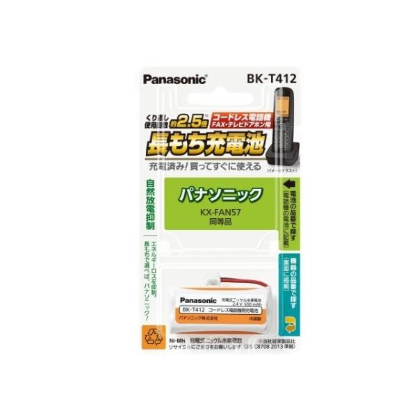 - ■充電済み。買ってすぐに使える。■自己放電抑制で使い勝手UP1年後でも80%の残存容量。■圧倒的なサイクル回数。2500回繰り返し使える(従来比2.5倍:JIS条件)■同等品パナソニック:KX-FAN57 パナソニック コードレス子機用充電池 BK-T412 (BKT412)