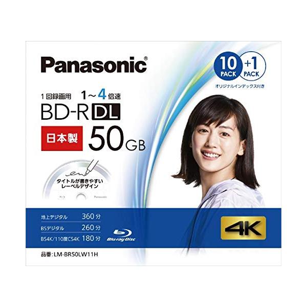 パナソニックPanasonic 録画用50GB 2層 1-4倍速対応 BD-R追記型 ブルーレイディスク 10+1枚パック LM-BR50LW1