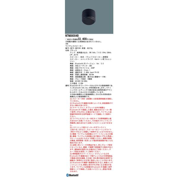 安心のメーカー保証 パナソニック施設照明器具 オプション NTN88004B ワイヤレススピーカー T区分 実績20年の老舗
