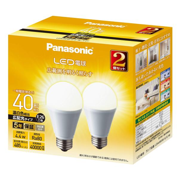 パナソニック LED電球 口金直径26mm 電球40形相当 温白色相当(4.4W) 一般電球 広
