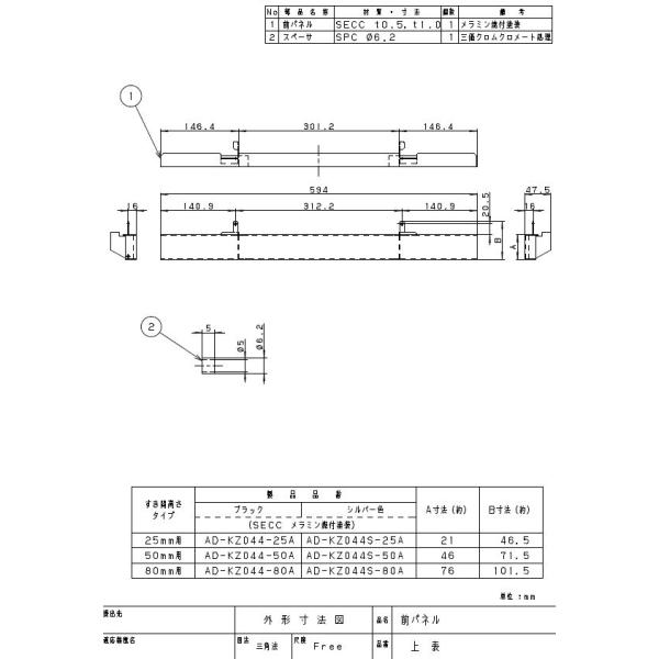 AD-KZ044-25A IHクッキングヒーター用部材 前パネル 25mm ブラック Panasonic パナソニック 電磁調理器