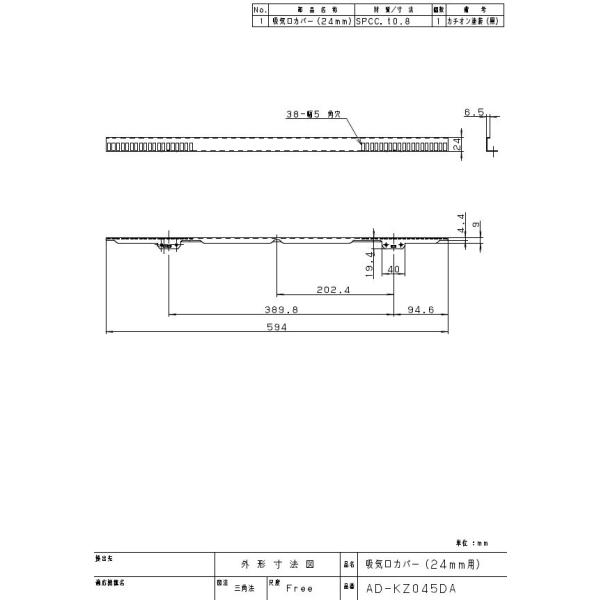 AD-KZ045DA IHクッキングヒーター用部材 吸気口カバー H=24mm ブラック Panasonic パナソニック 電磁調理器