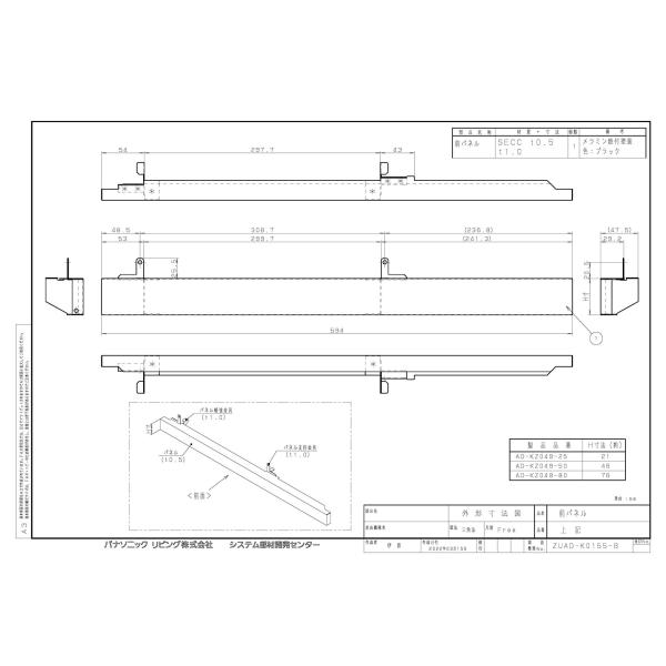 AD-KZ049-80 IHクッキングヒーター用部材 前パネル 80mm ブラック Panasonic パナソニック 電磁調理器